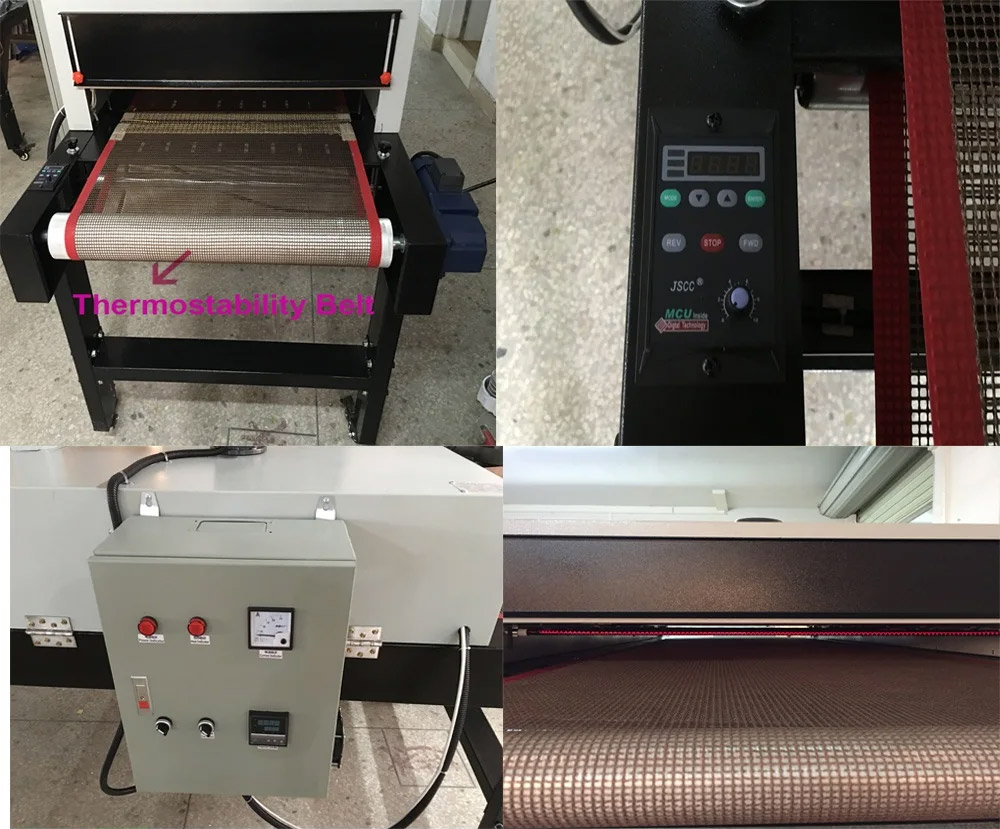 This tunnel dryer is suitable for heating printing ink on clothes, even heat-set ink.